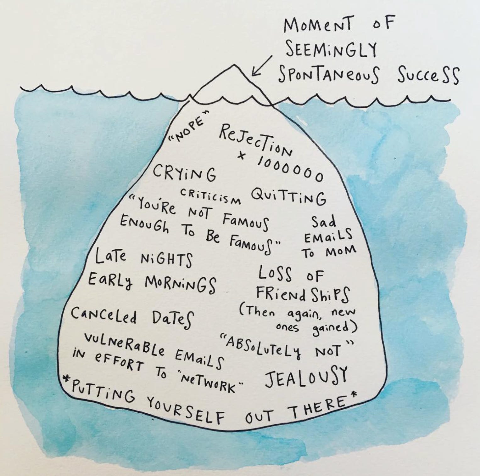 Carla Zanoni sent me this illustration 👆 from Mari Andrew just as I was sitting down to tell you about my conversation with Mandy Fabian on The Uplifters Podcast. I always thought (hoped) the Giant Iceberg of Creative Fear would get smaller over time. Turns out that’s not the case. If anything, it gets bigger.