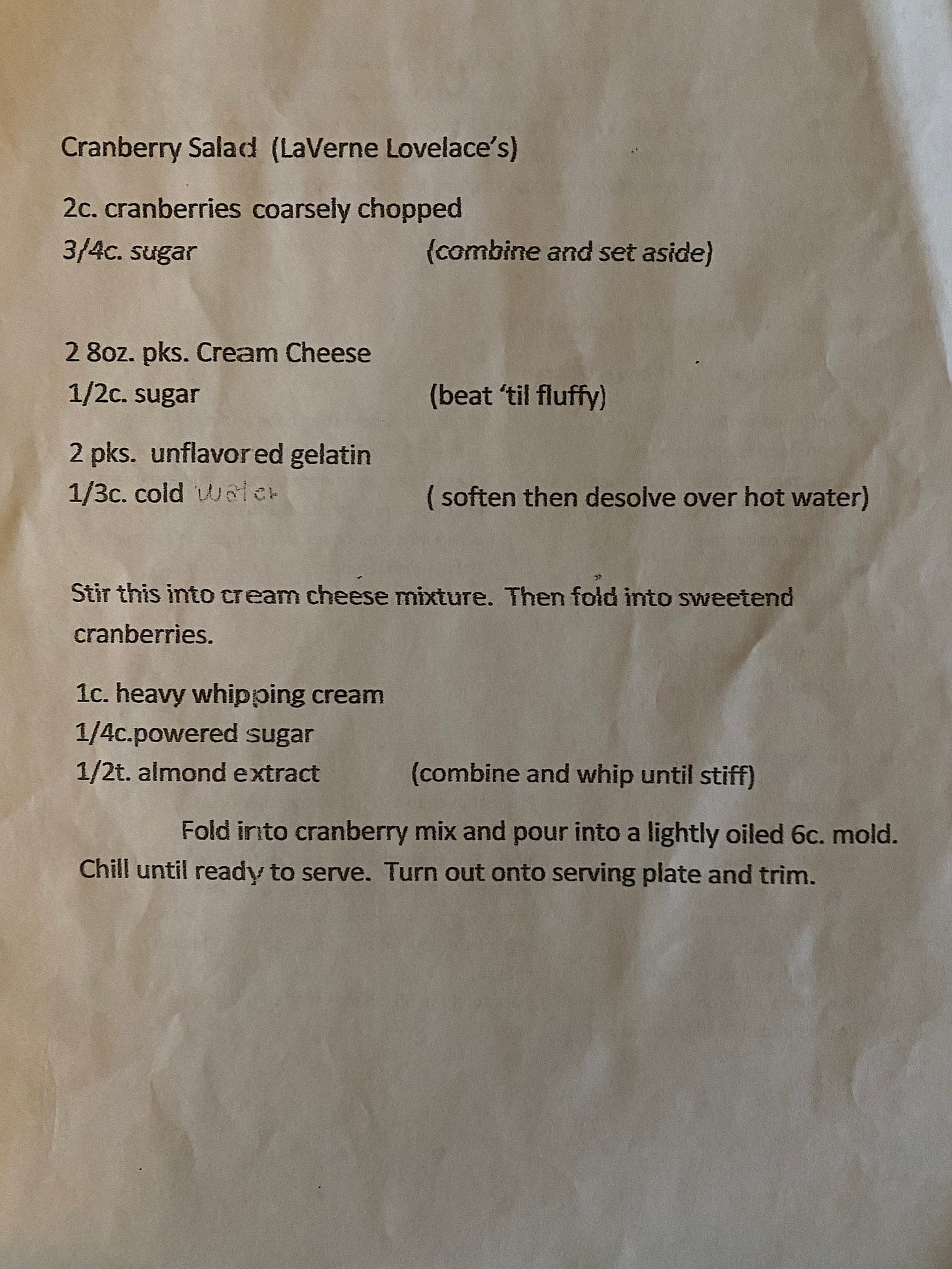 Every Thanksgiving, our family serves what was dubbed generations ago as “pink salad”. It has nothing to do with salad. It’s an old-fashioned gelatin dish made with cranberries and whipped cream (apparently, we were ahead of the curve on this).